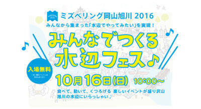 【みんなでつくる水辺フェス♪ミズベリング岡山旭川】 日時:2016年10月16日(日)10:00~16:00 場所:岡山城、岡山後楽園周辺他の旭川、石山公演、後楽園東広場ほか ※当イベントでは専用駐車場をご用意しておりま … 続きを読む 2016.10.16【みんなでつくる水辺フェス♪ミズベリング岡山旭川】