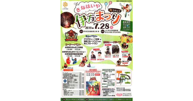 毎年大好評のきなはいや市場や活魚のつかみどり、キャラクターショーや海上イベント、夜には花火大会などが行われ、一日中楽しめるイベントになっています。