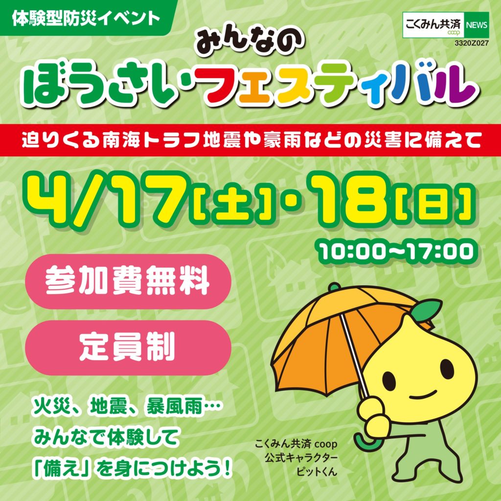 体験型防災イベント(REAL BOUSAI)や様々な防災に関するステージショー、防災ワークショップなど迫りくる南海トラフ地震や豪雨などの災害に備えて、家族で体験して「防災」について考えよう。