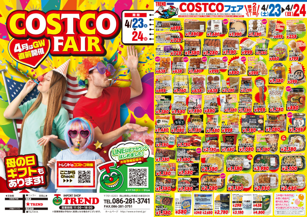4/23(土)・4/24(日)のGW直前の2日間!インポートショップトレンドで “コストコフェア”を開催いたします。