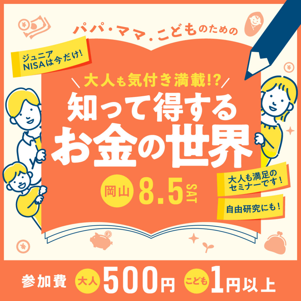 8/5(土)に、ブランチ岡山北長瀬にて「大人も気付き満載!?知って得するお金の世界」を開催します✨