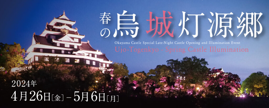 岡山城天守と烏城公園一帯を光で彩るライトアップイベント「春の烏城灯源郷」が、開催されます。