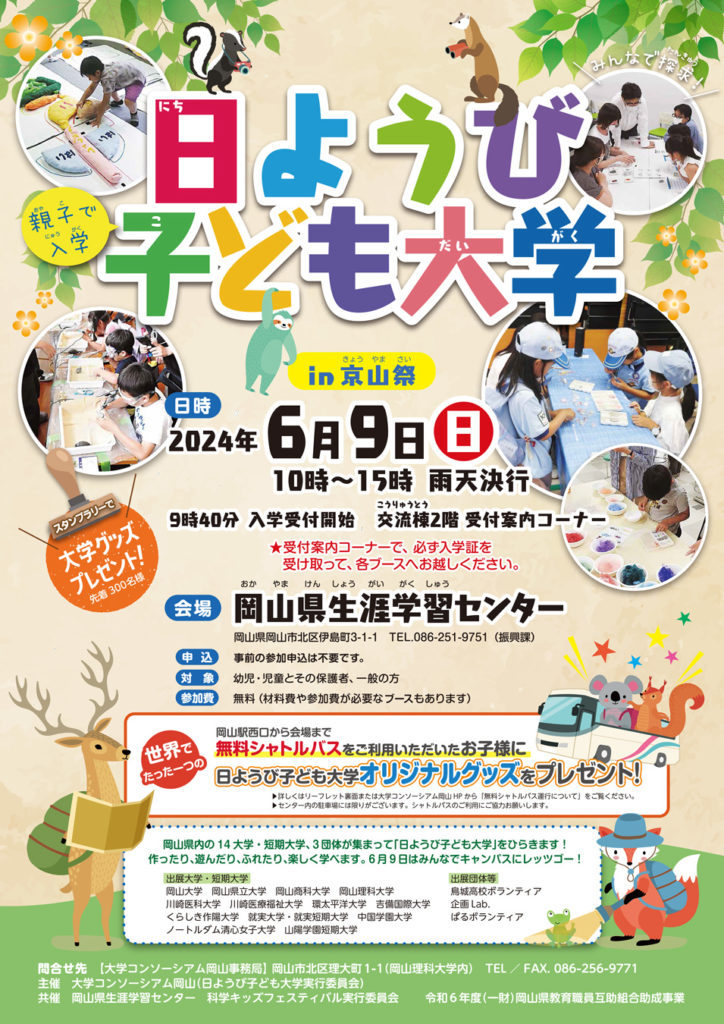岡山県内の13大学と2短期大学、3団体が集まって「日ようび子ども大学」を開きます!