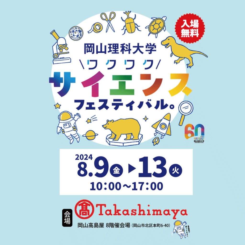 岡山理科大学60周年記念事業の一環として「科学」を身近に感じ「科学」の面白さを世に広めるべく、