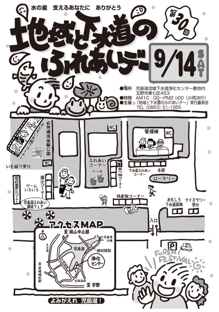 「地域と下水道のふれあいデー」は、児島湖流域下水道事業に対する理解をより一層深めていただくとともに、下水道の普及促進を図ることを目的として開催している地域の方々とのふれあいイベントです。