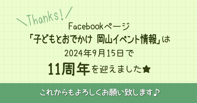 Facebookページ「子どもとおでかけ 岡山イベント情報」が11周年を迎えました。