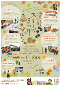 勝央町特産品の黒大豆や作州栗(岡山甘栗)をPRするイベント「勝央町スイーツまつり&マルシェ」が、今年も開催決定!