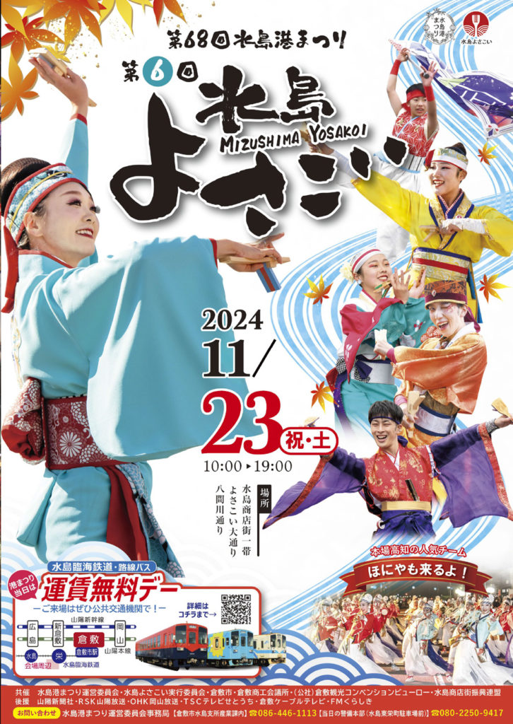 「水島よさこい」は県内外から様々なチームが水島に集結し、熱くそして華麗に舞い踊ります。