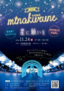 井原鉄道の井原駅から続く駅前通りをライトアップ。