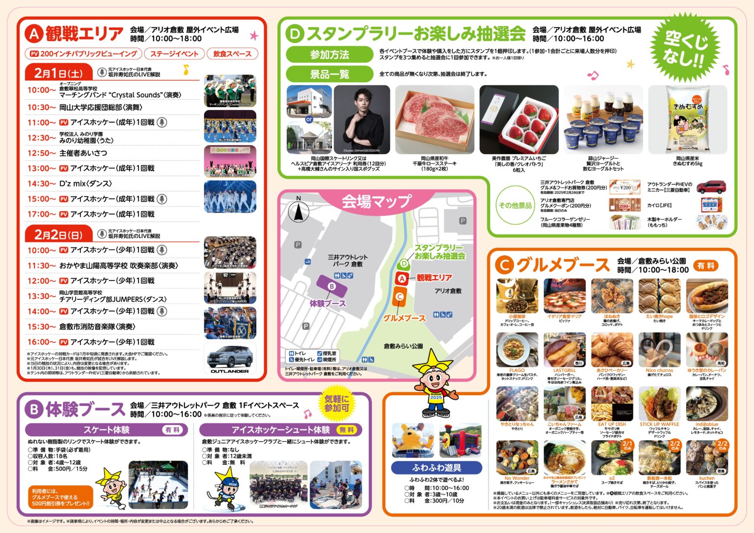 場所:倉敷みらい公園、アリオ倉敷、三井アウトレットパーク倉敷(倉敷市)