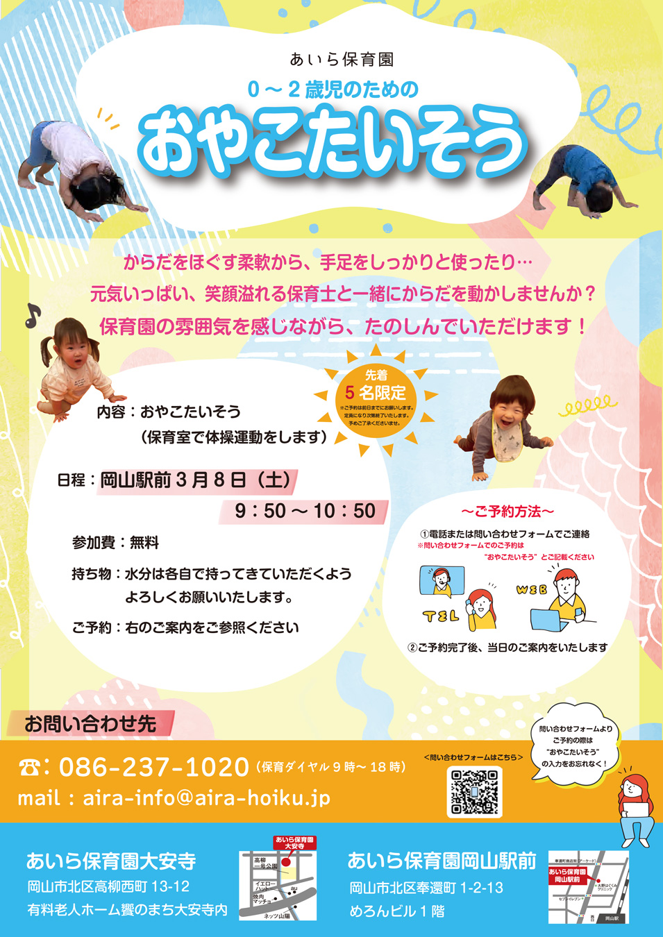 ※お問い合わせフォームからご予約される場合は「おやこたいそう」とご記入ください💨