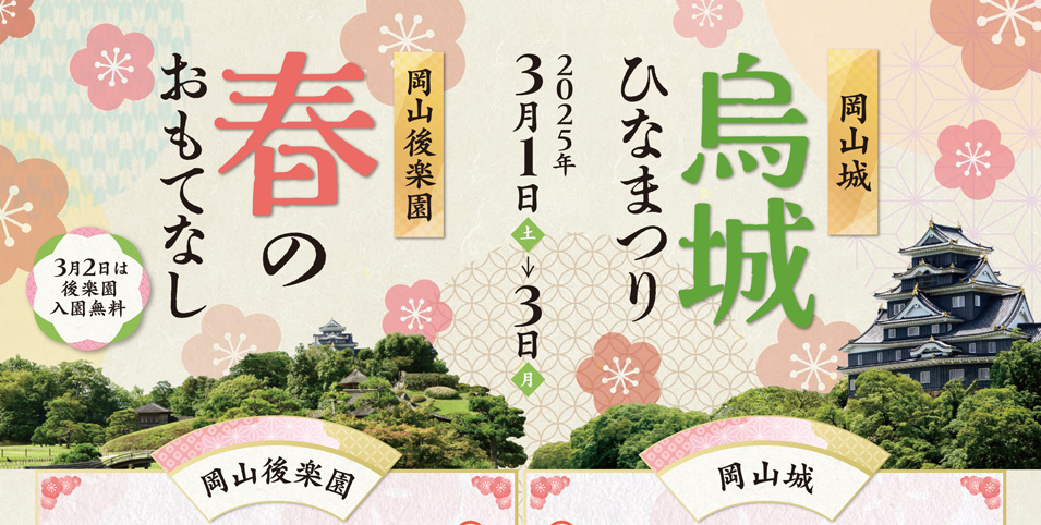 岡山城らしい和の雰囲気が楽しめるイベント「烏城ひなまつり」を開催します。