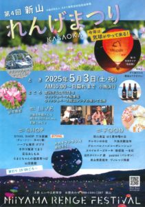 笠岡市新山地区に咲くれんげを眺めながら、音楽とグルメを楽しめるイベントが今年もGWに開催されます。