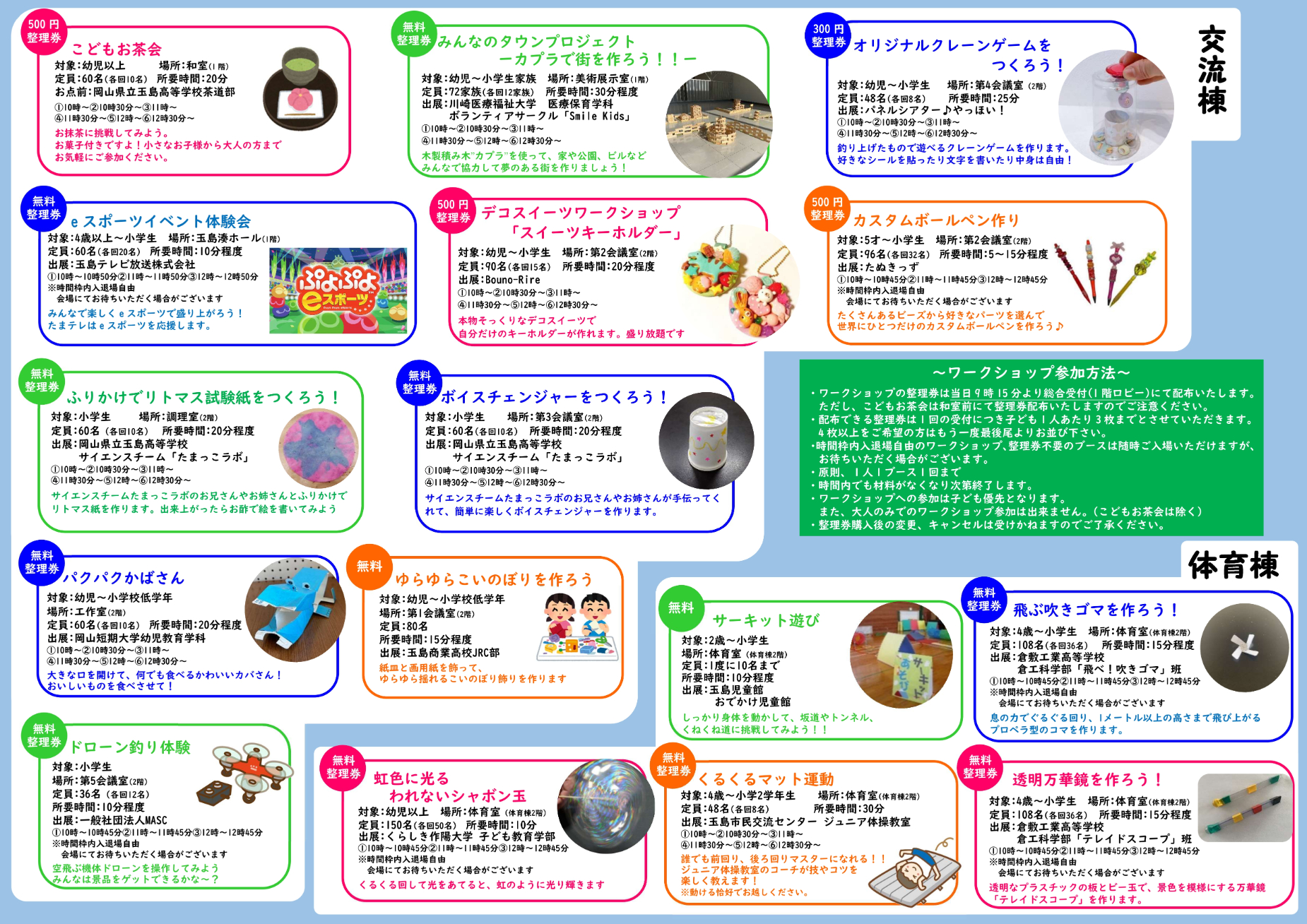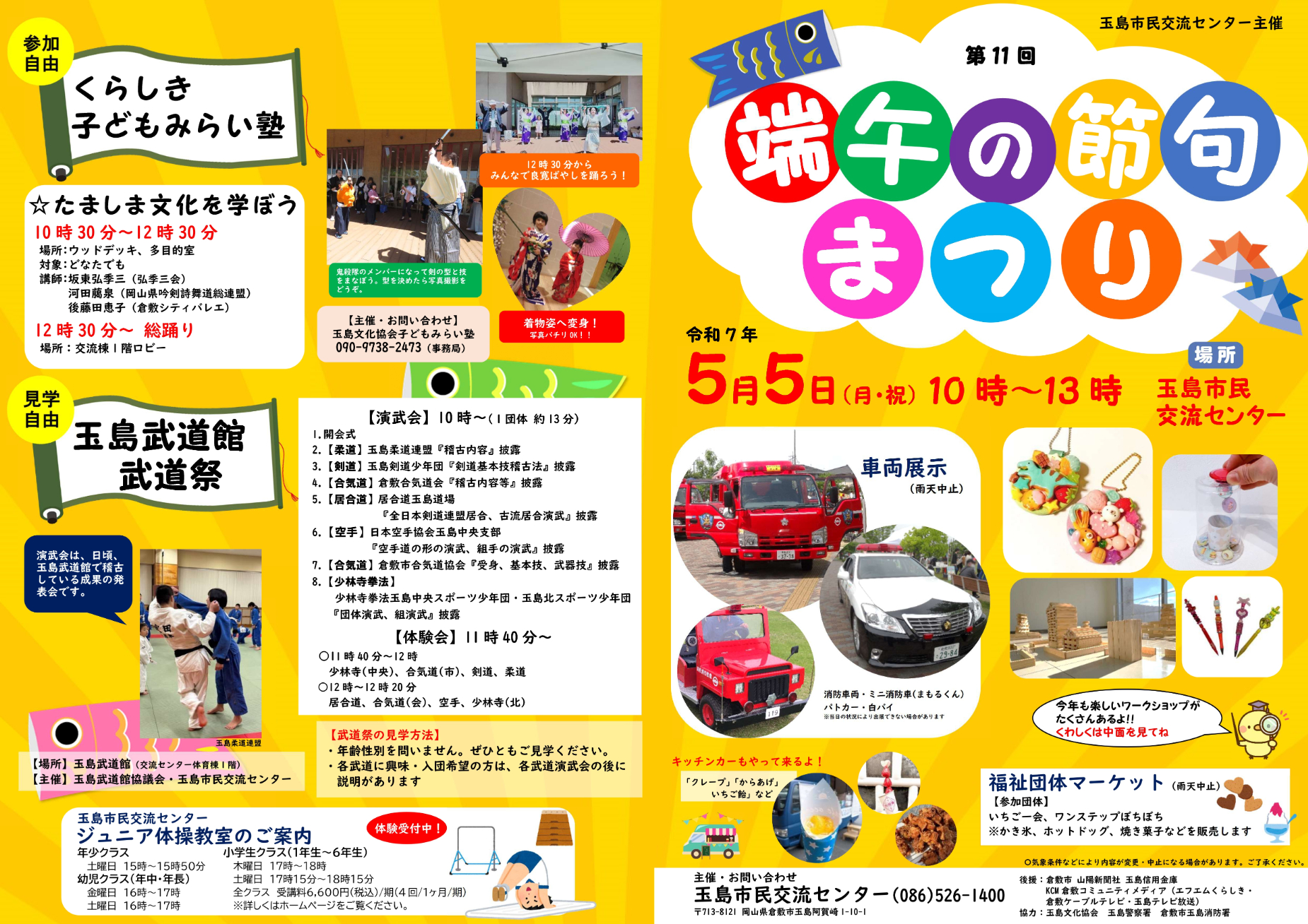 また「くらしき子どもみらい塾」による玉島文化を学べるブース、玉島武道館では武道祭も開催します。