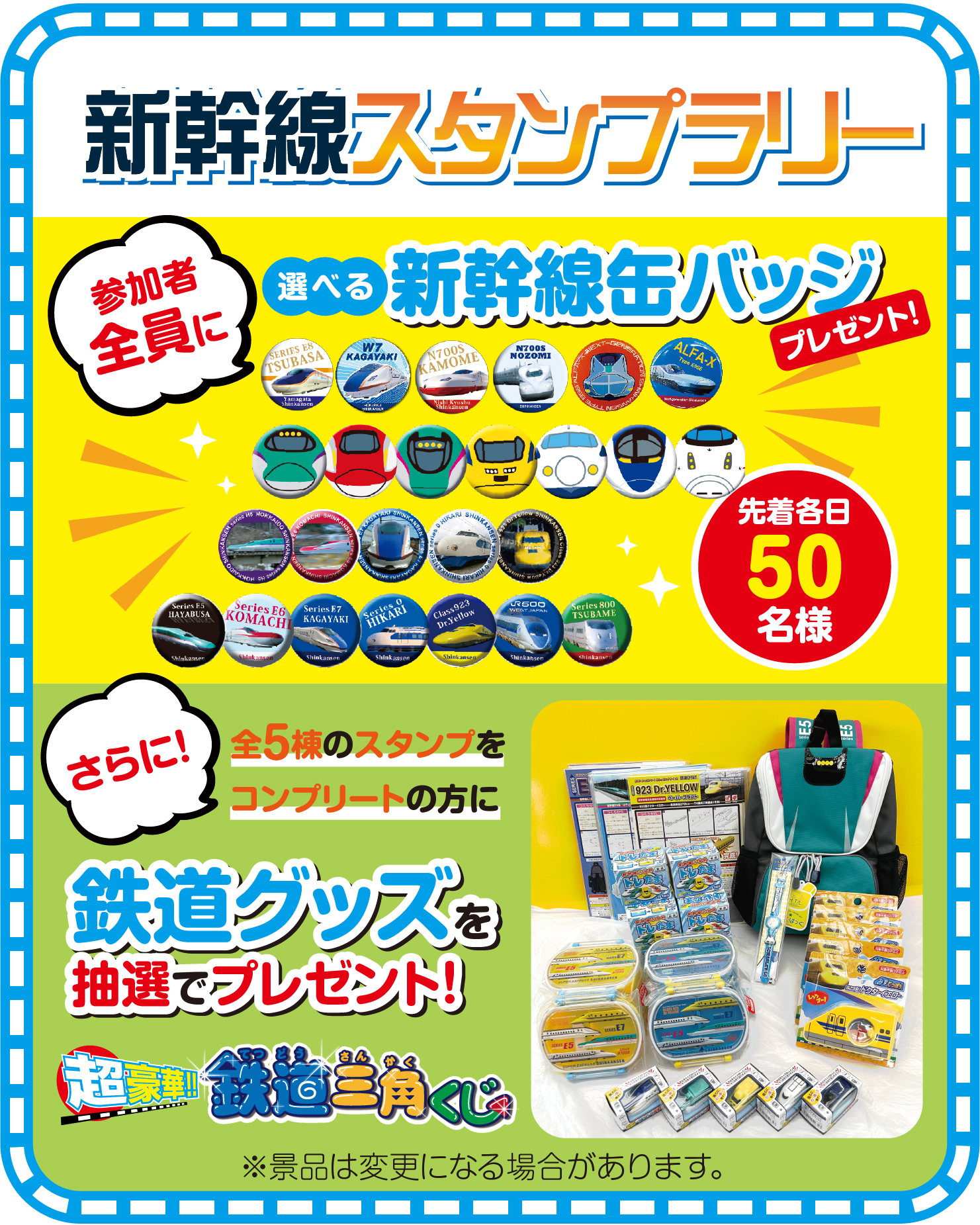 参加者全員に「選べる新幹線缶バッジ」を先着各日50名様にプレゼント!