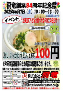 【飛竜創業84周年記念祭(できたてうどん販売)】