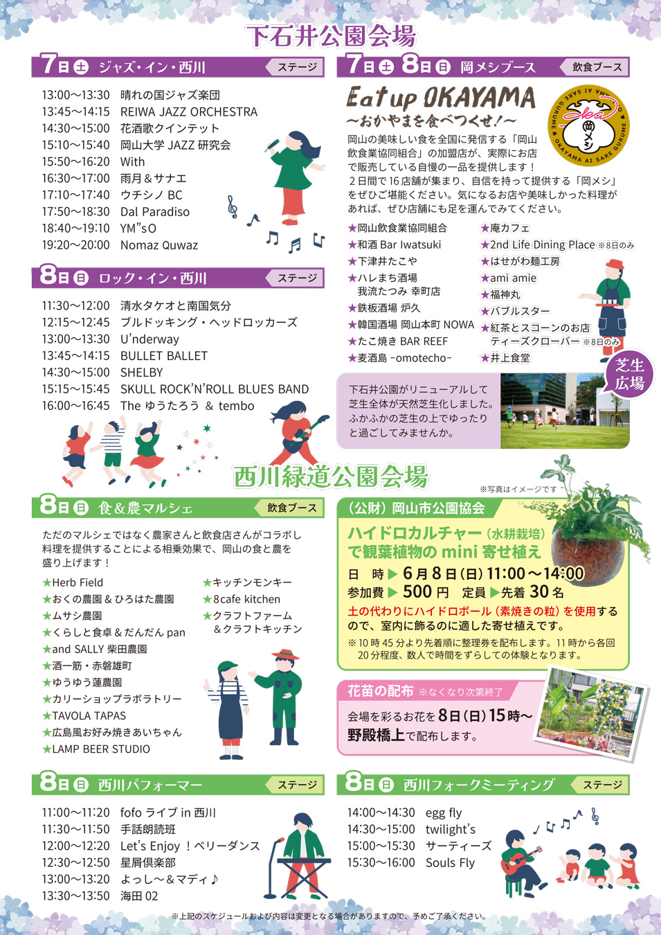 「ぷらっと西川(Eat Up OKAYAMA)」、「食&農マルシェ」による飲食イベントを開催します!