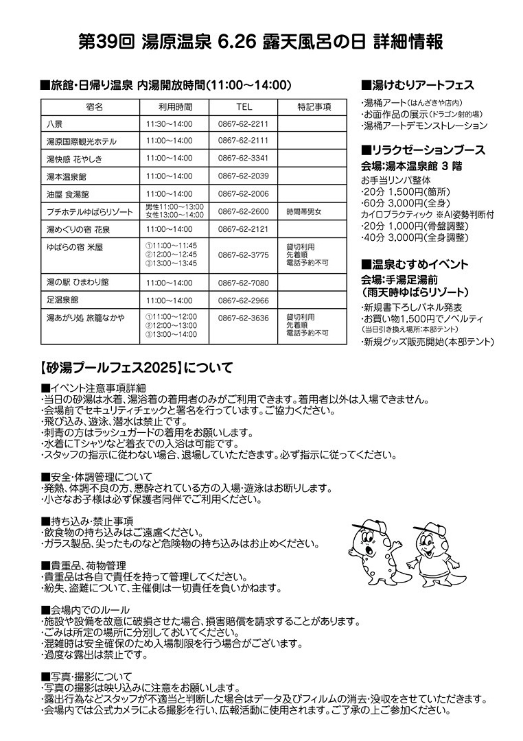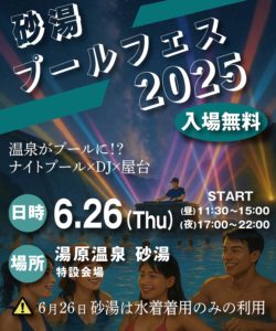 また湯原温泉の名所『 砂湯 』ではプールフェスが初開催!