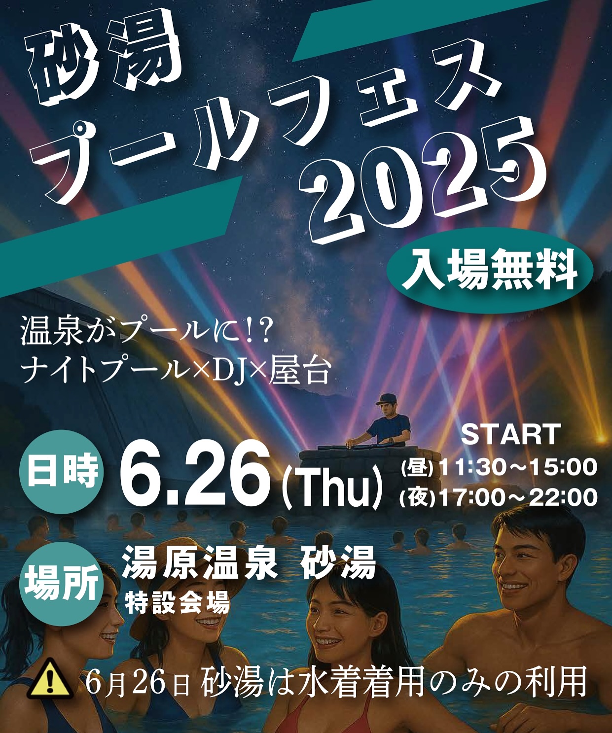 ※砂湯ナイトプール(昼の部 11:30~15:00/夜の部 17:00~22:00)
