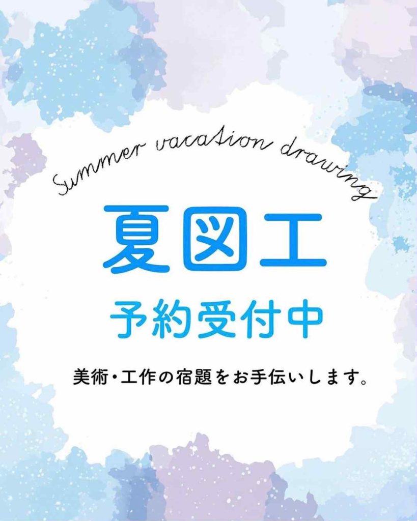 「夏図工」は夏休みの美術の宿題(ポスター、絵画)や、自由研究の工作をお手伝いする1回3時間の完全予約制プログラムです。