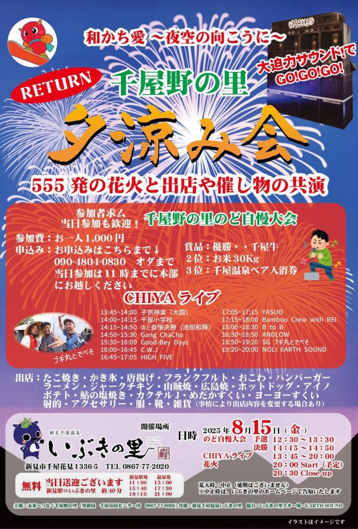 日時:2025年8月15日(金)12:30~20:30(花火20:00~)