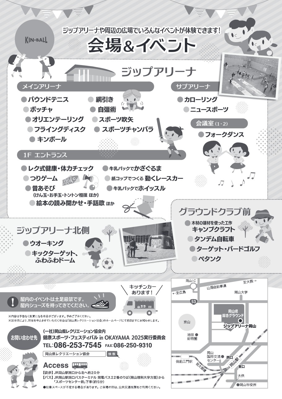 「動いてあそぼう」「作ってあそぼう」をテーマに、 岡山県総合グラウンド体育館及びその周辺で体を動かして思いっきり楽しめる健康づくりの体験イベントです!