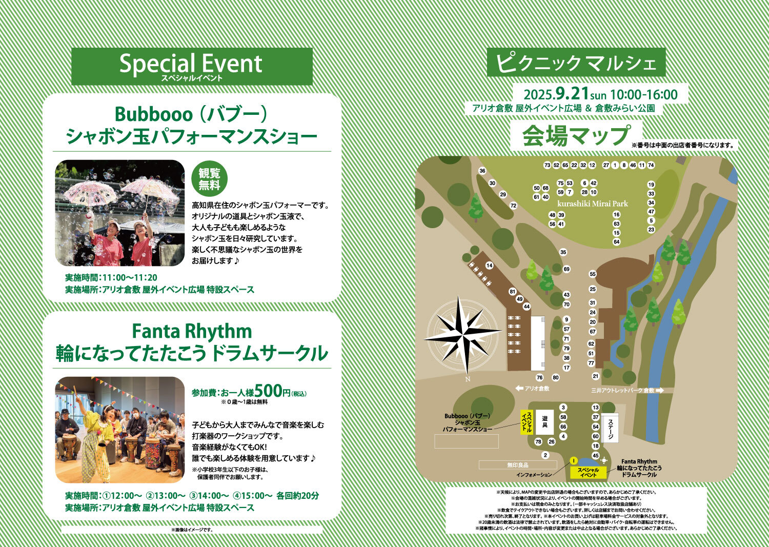 2025年9月21日(日)、アリオ倉敷 屋外イベント広場&倉敷みらい公園で「ピクニックマルシェ」を開催。