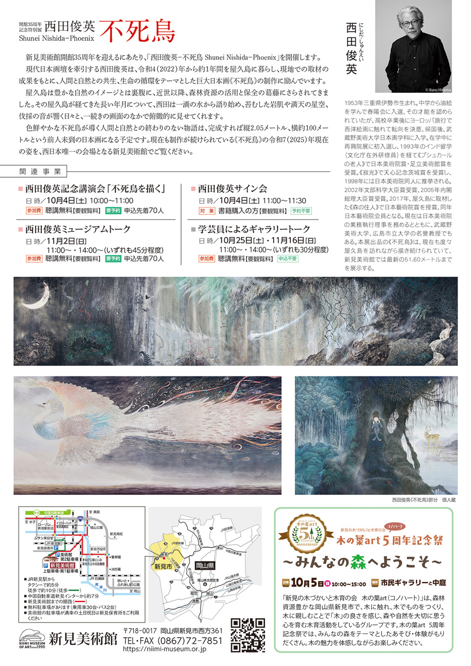 新見美術館開館35周年を迎えるにあたり、「西田俊英―不死鳥 Shunei Nishida-Phoenix」を開催します。