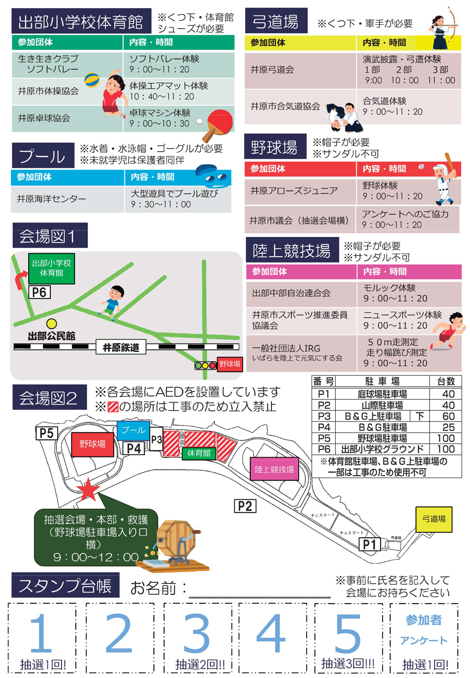 場所:井原運動公園、出部小学校体育館(井原市上出部町)