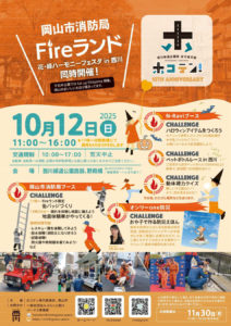 岡山市消防局とコラボレーションし、消防車などの働く車に乗ったり、まちを守る消防士さんのお仕事を体験したりと、貴重な体験ができるイベントを企画しています。