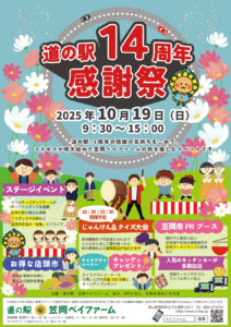 道の駅14周年の感謝をこめて、コスモスが咲き始めた笠岡ベイファームの秋を楽しむイベントです。