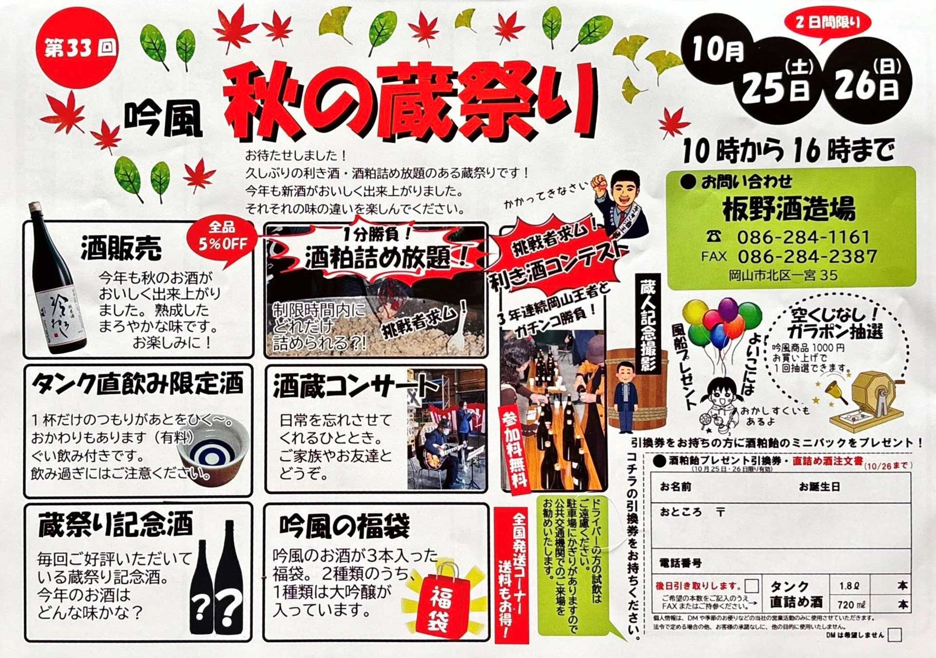 2025.10.25-26【第33回 吟風 秋の蔵祭り】(岡山市北区/板野酒造場)