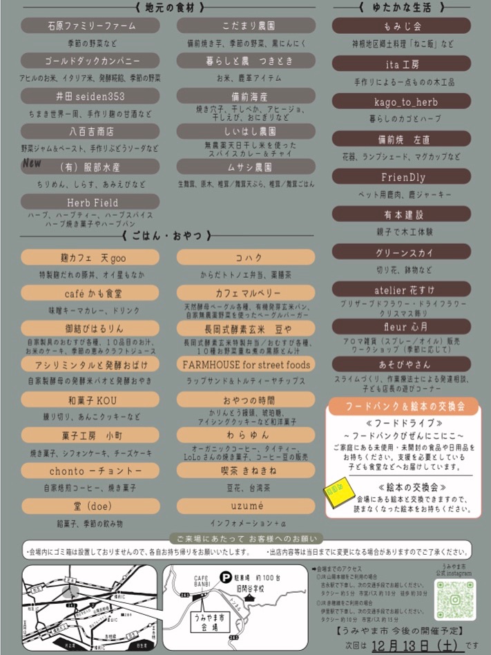 新鮮な野菜や海の幸、地元の食材を使ったごはんやおやつなど販売。