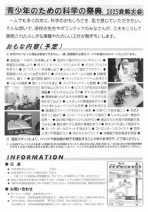 「青少年のための科学の祭典」は、実験や工作を通して、子どもたちに科学の魅力を楽しんでいただく県下最大の科学教育イベントです。