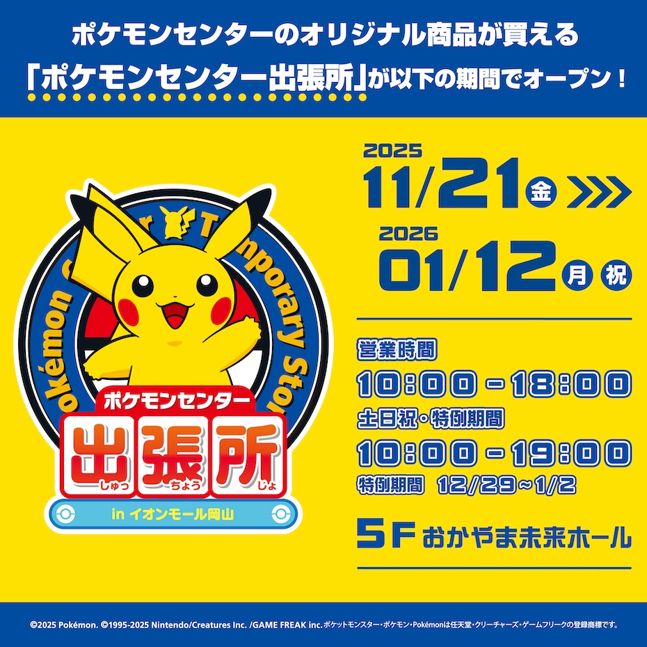 その出張店舗となる、「ポケモンセンター出張所 in イオンモール岡山」がオープン!
