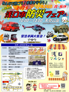起震車による地震体験や、煙体験ハウスによる避難体験など、防災を楽しく学べるイベントです。