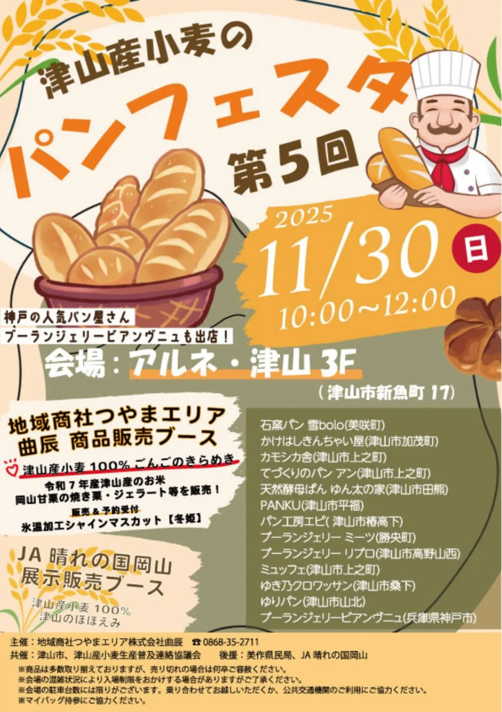 会場で、津山産小麦100%小麦粉「ごんごのきらめき」と「津山のほほえみ」も購入いただけます。