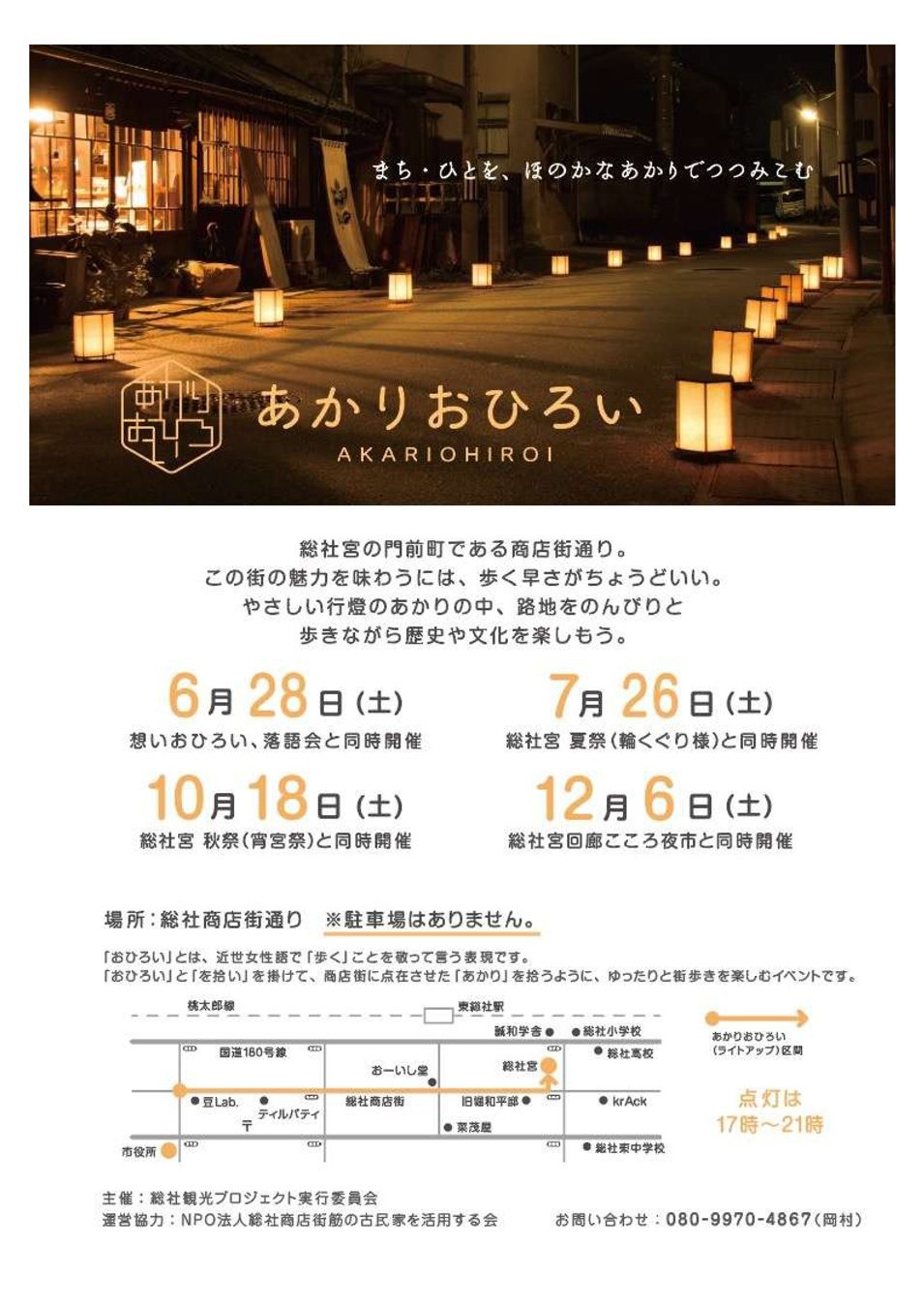 また、「あかりおひろい」も同時開催。総社商店街通りには300台の行燈を設置され、足元をほのかに照らしております。