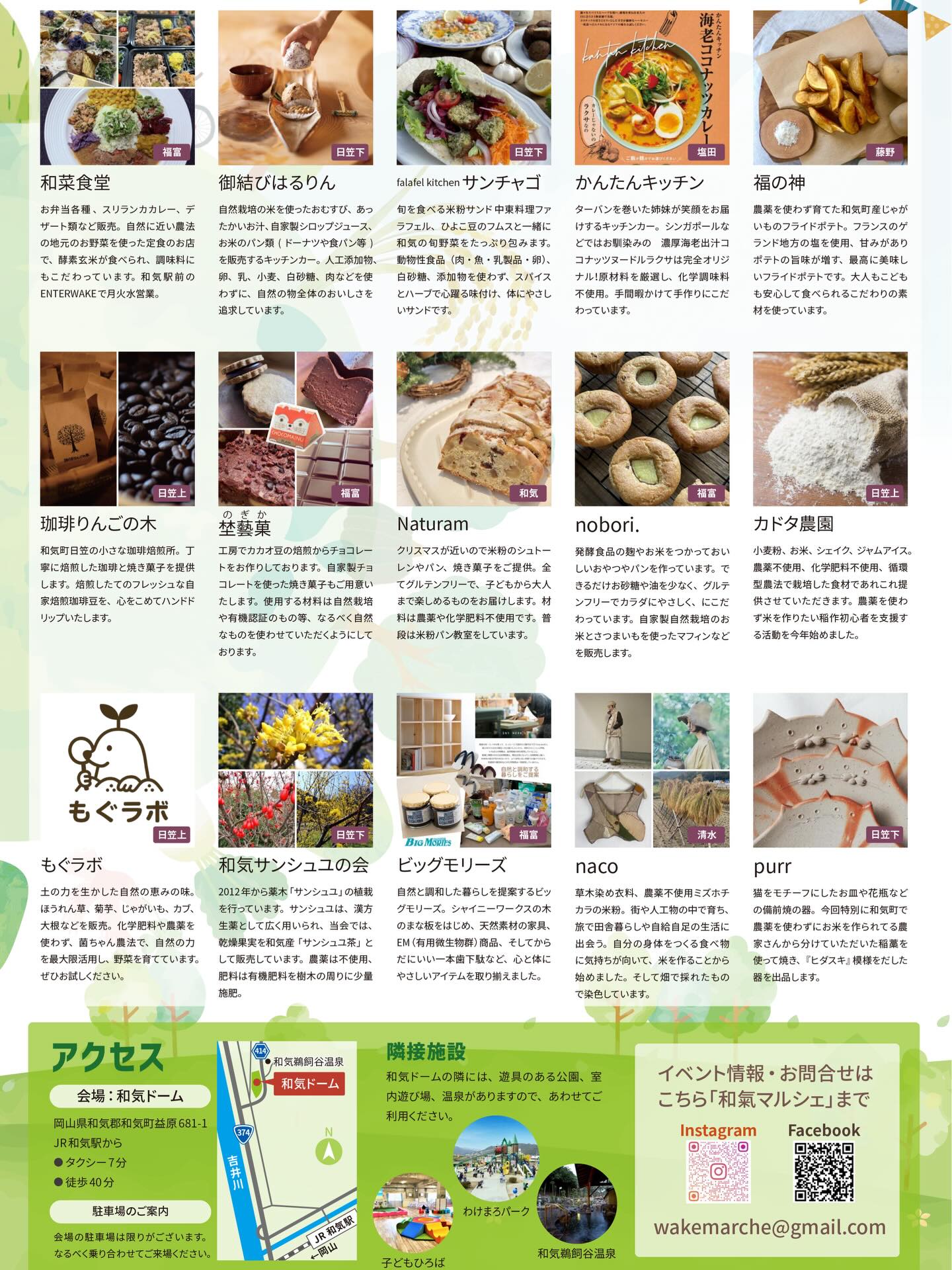 季節の農作物、加工品、飲食店、キッチンカー、手づくり工芸品などの約30店舗が出店。