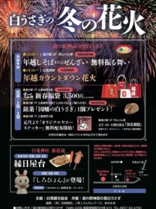 大晦日のカウントダウン花火を目玉に、道の駅と白兎神社参道を会場として、グルメや縁日、お正月限定企画が展開されます。