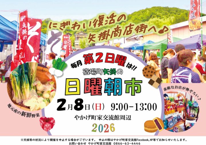 2026.01.29 岡山県内のイベント okayama-kodomo 2026.2.8【宿場町矢掛 日曜朝市!】(矢掛町) ポスト シェア はてブ 送る Pocket 【宿場町矢掛 日曜朝市!】 日時:2026年2月8日(日)9:00~13:00 場所:やかげ町家交流館周辺(小田郡矢掛町矢掛2639) >>Facebookイベントページ 毎月第2日曜は!宿場町矢掛 の 日曜朝市! シェア! ポスト シェア はてブ 送る Pocket feedly