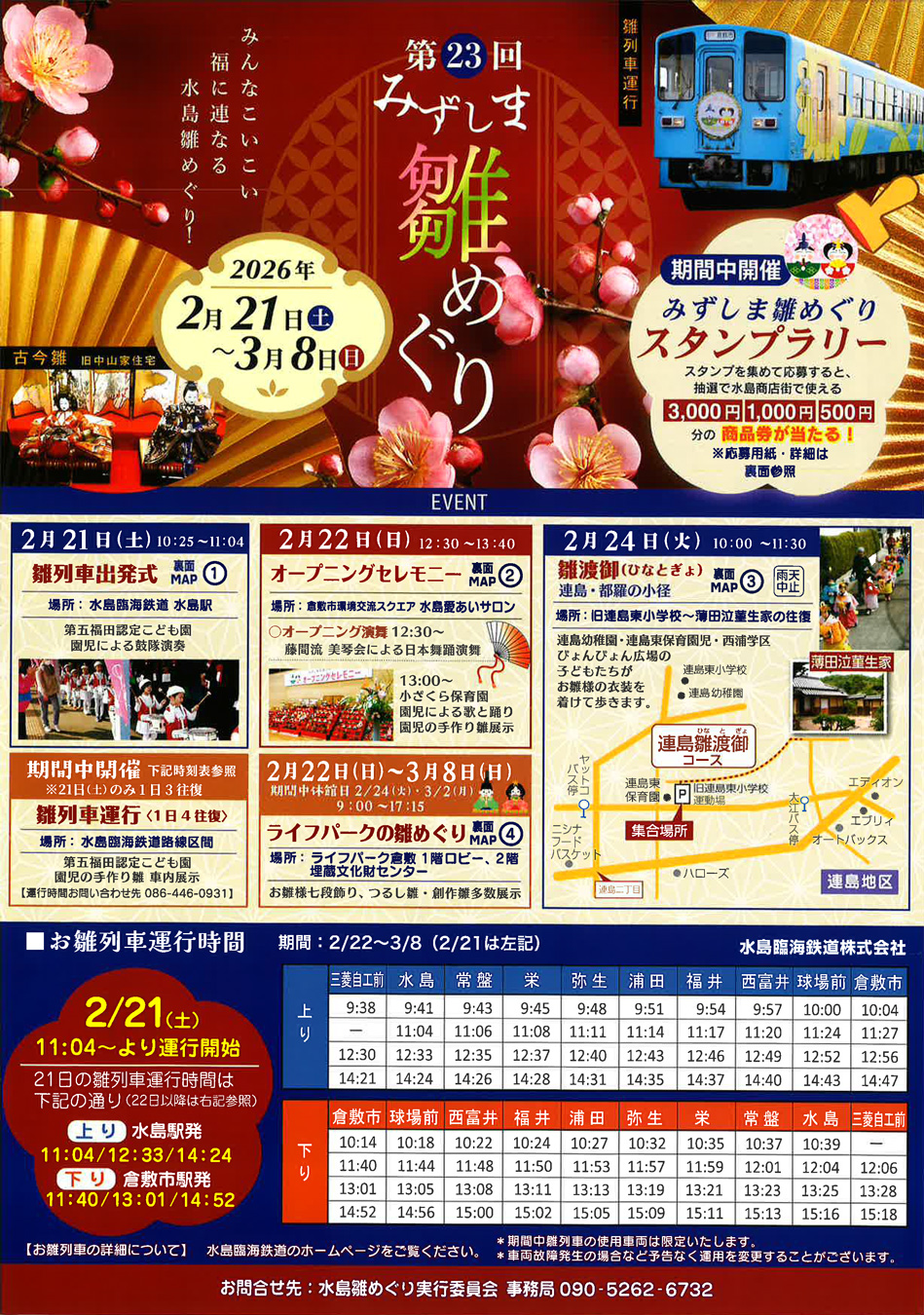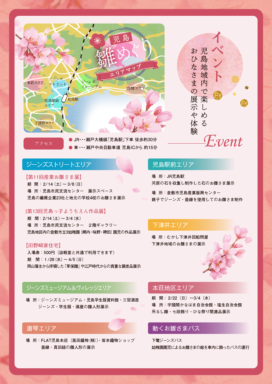 場所:倉敷、児島、玉島、水島、真備・船穂地区(倉敷市)