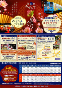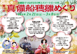 商店街やギャラリー、旅館、ホテル、文化施設などで、本格的な江戸時代の古今雛から、地元幼稚園児による手作り雛まで、時代を映した雛を展示します。