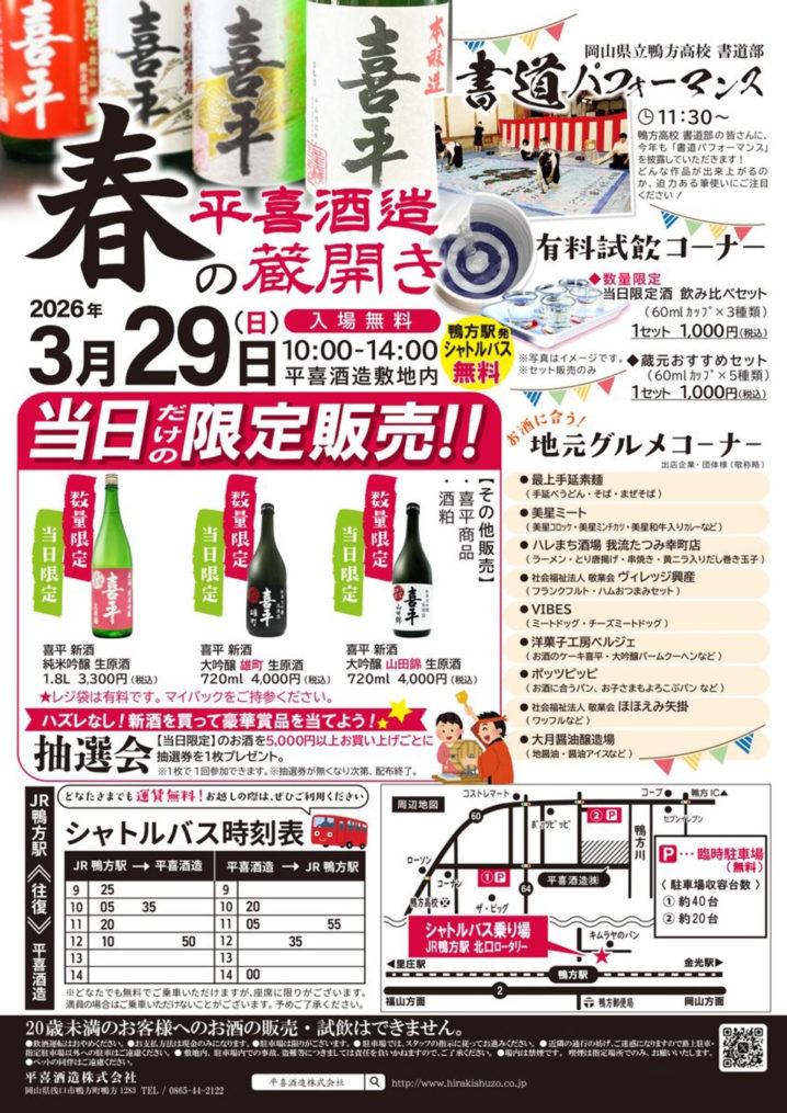 浅口市の「平喜酒造」にて、春に開催される蔵開きイベント