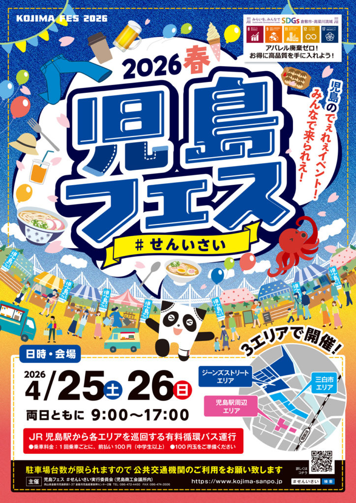 「児島駅周辺エリア」「三白市エリア」「ジーンズストリートエリア」の3つのエリアごとに、さまざまなイベントが盛りだくさん!