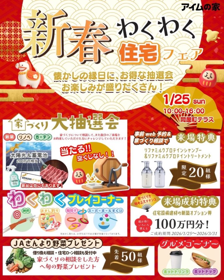 2026年1月25日(日)、アイムの家 問屋町テラスモデルハウスにて「アイムの家 新春わくわく住宅フェア」開催!