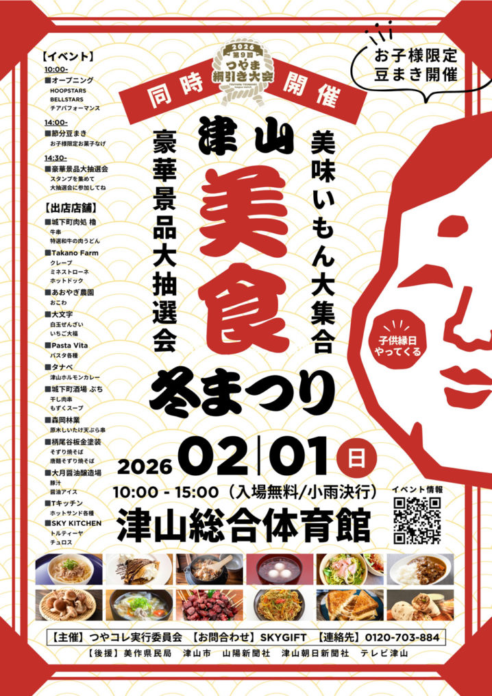 2026年2月1日(日)、岡山県津山総合体育館にて「津山美食の冬まつり」開催。