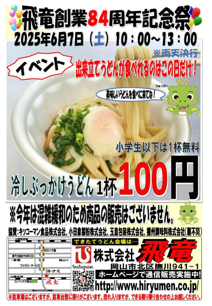 2025.6.7【飛竜創業84周年記念祭(できたてうどん販売)】(岡山市北区)