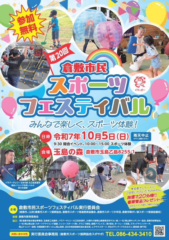 2025年10月5日(日)、玉島の森で「第20回倉敷市民スポーツフェスティバル」開催!