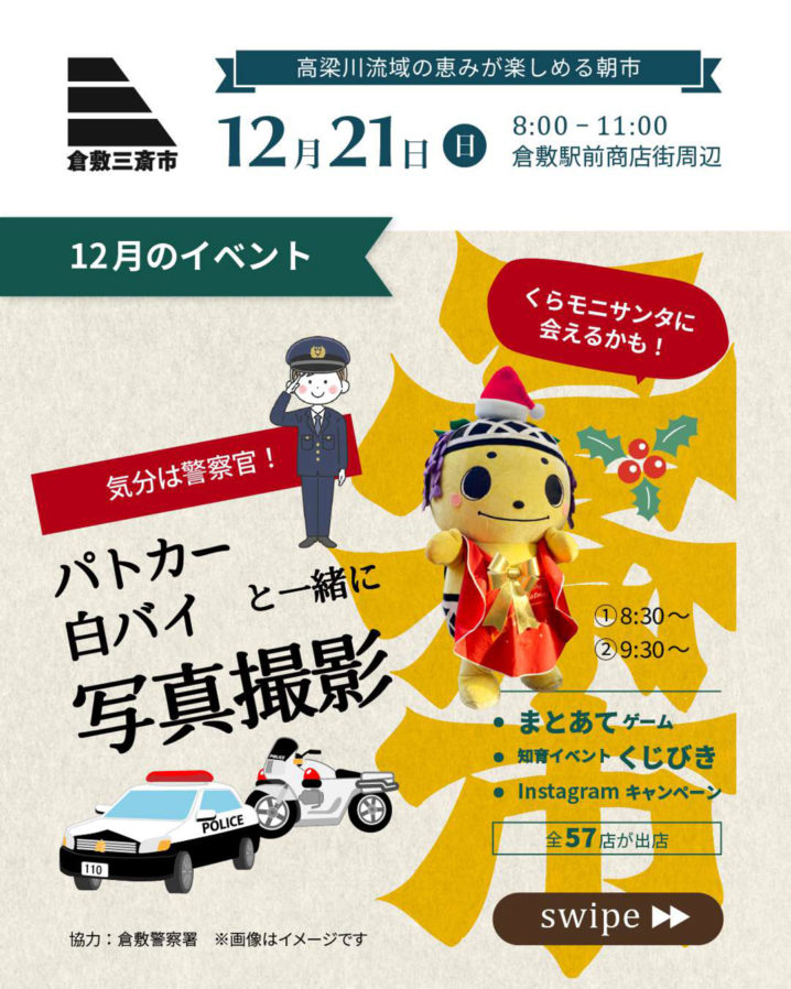 2025年12月21日(日)、天満屋ハピータウントピア・パティオ・7番街(倉敷市児島)にて「児島駅前三白市」開催!